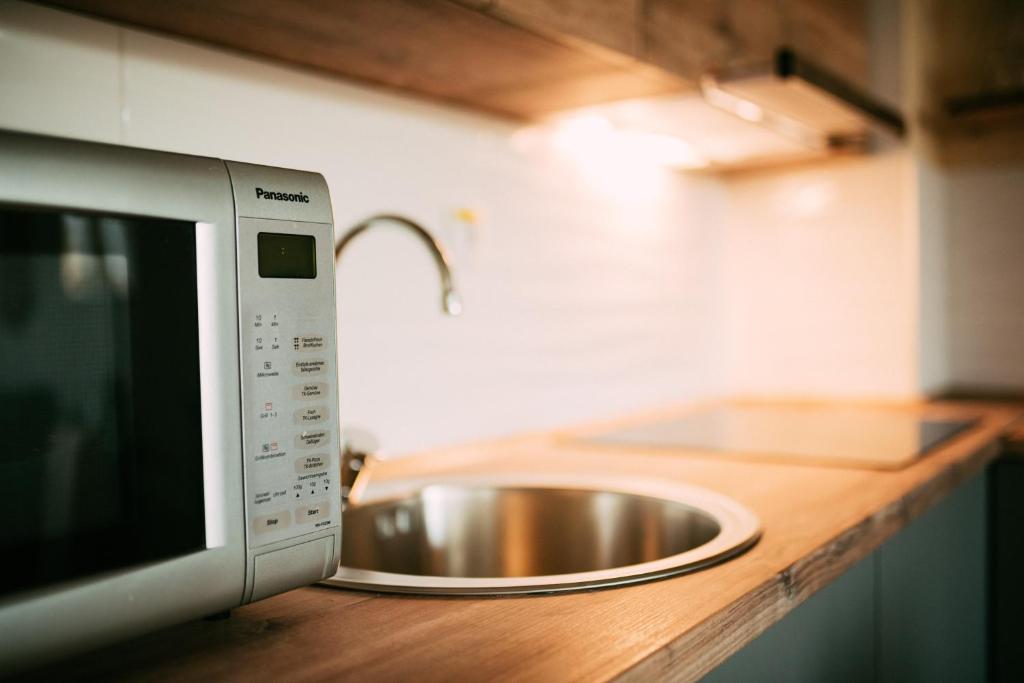 Refrigerator, Microwave, Washing machine, Kitchen, Electric kettle, Kitchenware, Oven, Stovetop, Toaster, Coffee machine, Dining table, Wine glasses